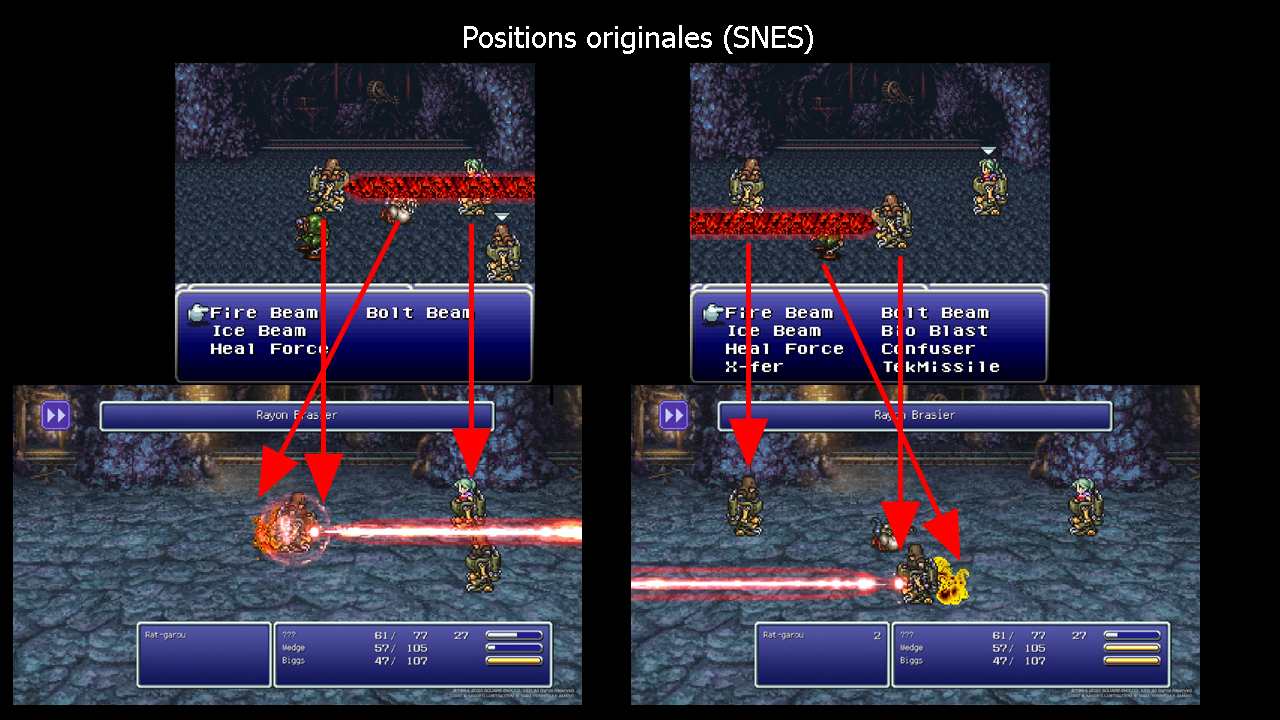 Sur SNES, Le joueur peux appuyer sur bas pour viser l'ennemi du bas,